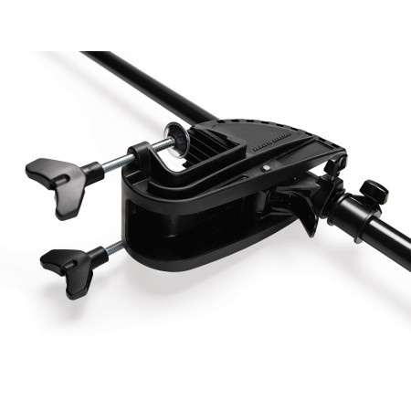 Die neue Motorhalterung mit Kippmechanismus ist breiter und tiefer als die der bisherigen Modelle und passt daher auch auf Boote mit besonders starkem Heckspiegel. Diese Halterung ist aus bruchsicherem Polyamid-Composit-Material und UV-beständig. Ein neuartiger Entsicherungshebel an der Halterung ermöglicht es, den Motor mit einem Handgriff hochzuschwenken.