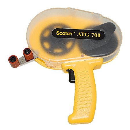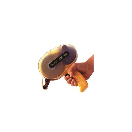 Ergonomic tape dispenser with transparent cover. The adhesive application done with automatic unwind of the protective paper.