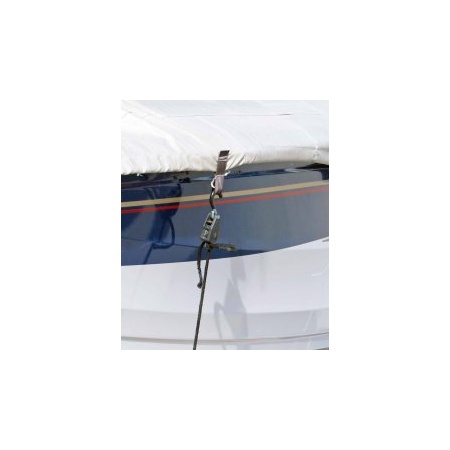Micro Ratchet Block with integrated cleat. Set includes the block and also two stainless steel S-hooks. The line is not part of the set and must ordered separately. Diameter up to 3 mm
